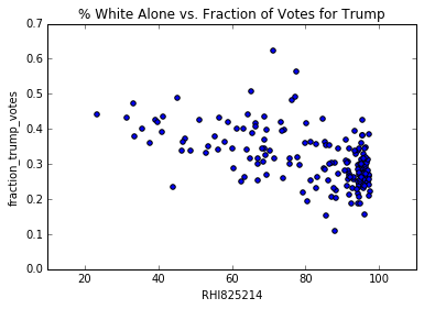 title='% White Alone vs. Fraction of Votes for Trump' )