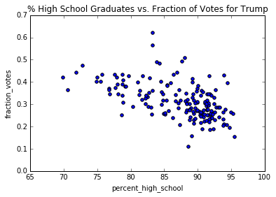 title='% High School Graduates vs. Fraction of Votes for Trump' )